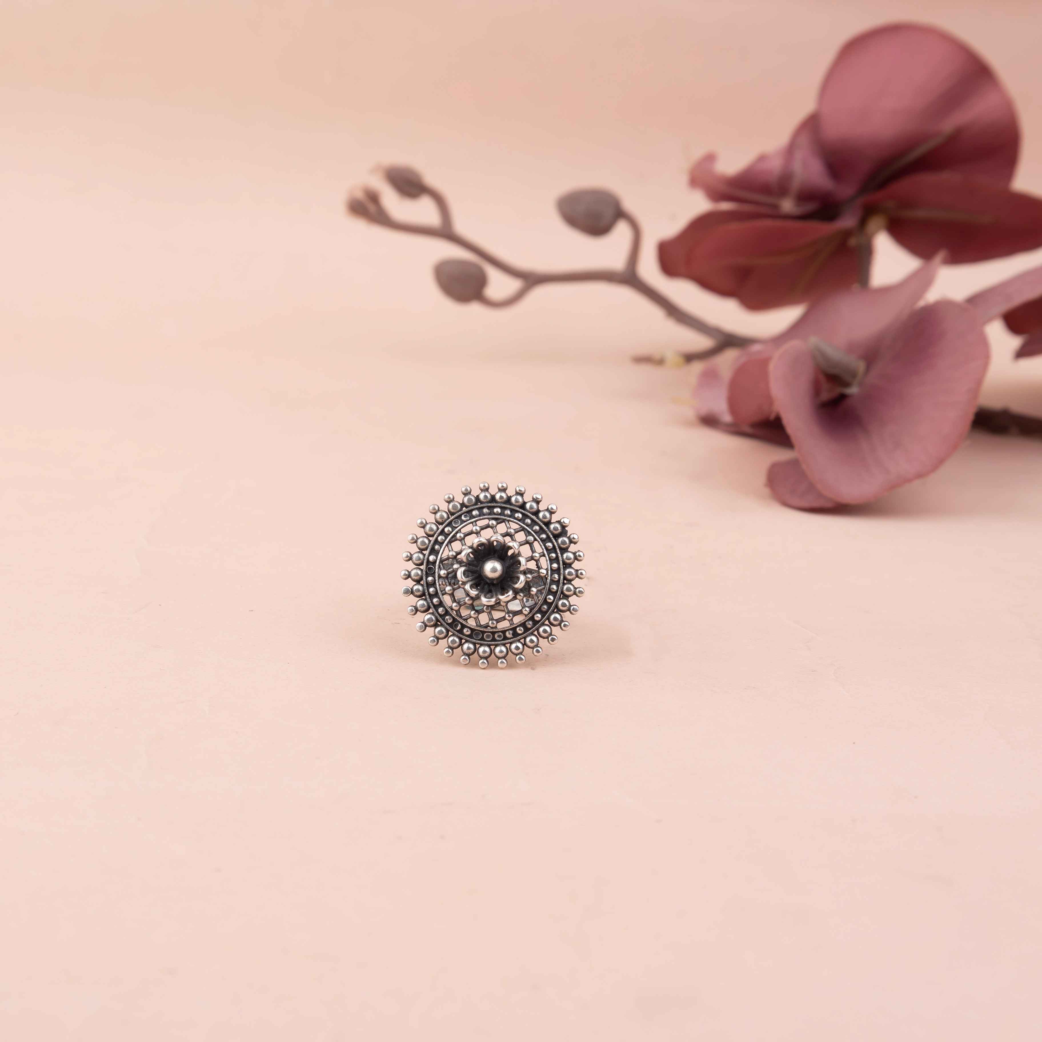 Adya Intricate Jali Flower Embossed Ring